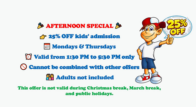 We cater to a variety of events, including birthday parties, sports team celebrations, religious gatherings, family and corporate Christmas parties, daycare and day camp outings, school trips, daycare and elementary graduations, and much more! Plus, we offer general admission tickets valid for the entire day.For a more exclusive experience, you can even reserve the entire center for your private event after our regular hours!